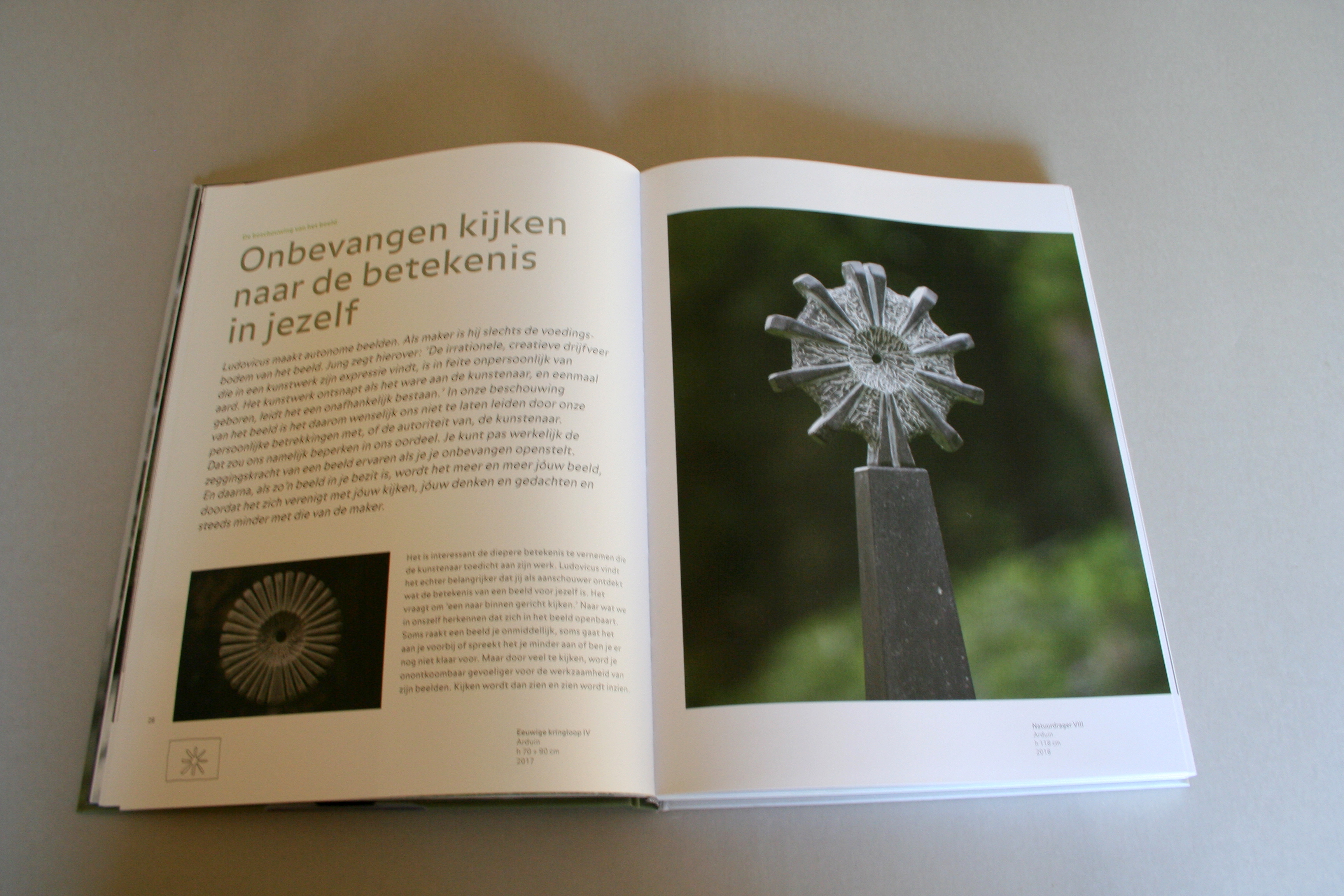 Symmetrie en geometrische vormen kenmerken Ludovicus’werk. De beelden weerspiegelen orde en harmonie. Het boek is toegankelijk opgezet en bevat veel fotografie van poort-wachters, vleugeldragers, bronnen, schalen, tekens, architecturale beelden, organische beelden en nog veel meer. Het zijn tijdloze vormen in steen, met een sterke zeggingskracht. De sereniteit ervan roept bij menig toeschouwer sacrale gevoelens op, de beleving van